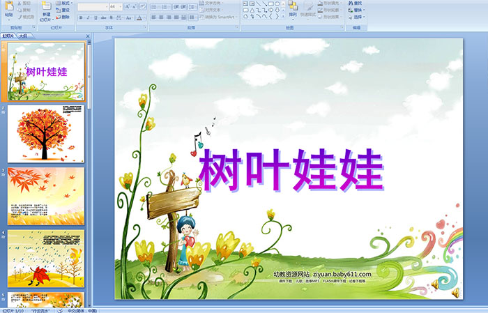 幼儿园大班故事——树叶娃娃 PPT课件