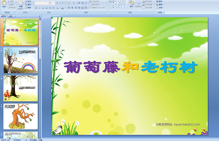 幼儿园大班故事——葡萄藤和老朽树 PPT课件