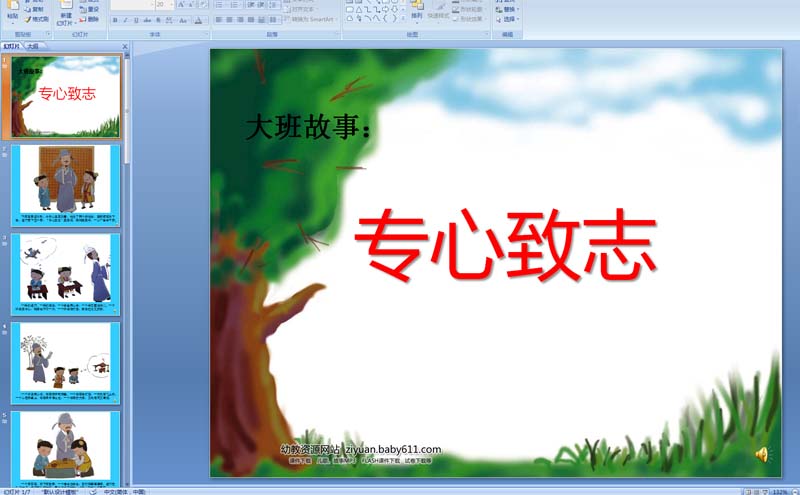 幼儿园大班故事:专心致志 PPT配音