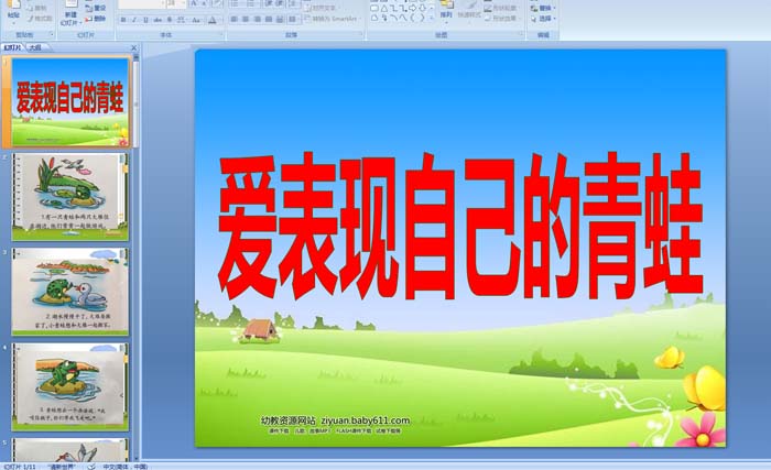 幼儿园大班故事:《爱表现自己的青蛙》 PPT课件