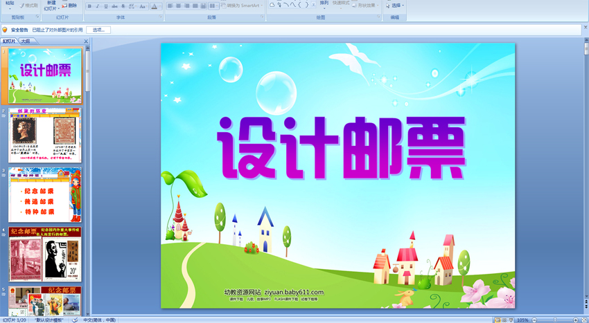 幼儿园大班社会PPT课件:认识邮票 知道邮票的种类及分类
