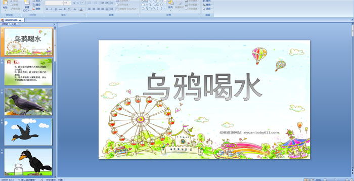 幼儿园大班科学教育——乌鸦喝水 PPT课件