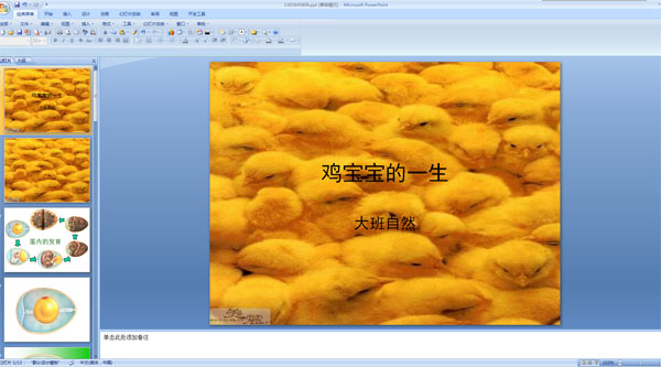 介绍鸡宝宝在鸡蛋里孵化的过程,共有13张幻灯片……