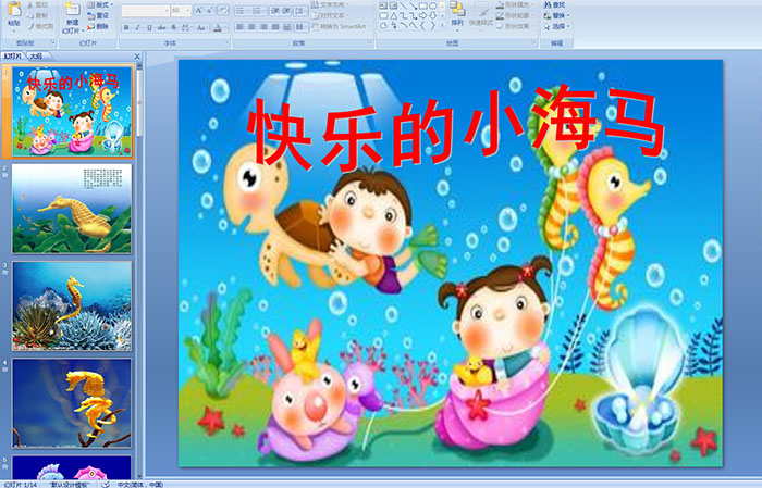 幼儿园大班美术活动《快乐的小海马》 PPT课件