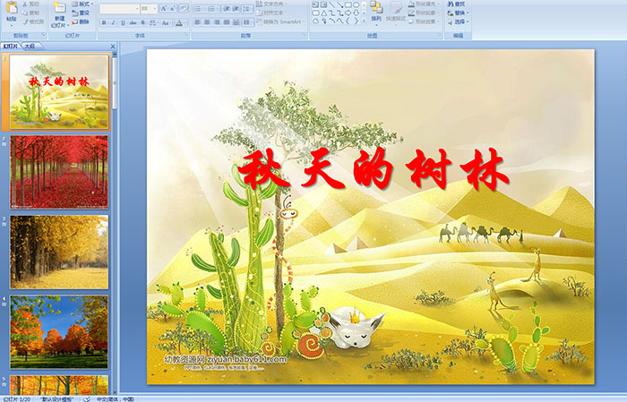 ……幼儿园中班美术活动——秋天的树林 PPT课件