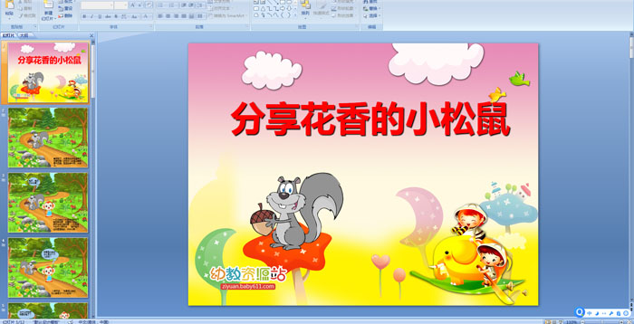 幼儿园故事《分享花香的小松鼠》 PPT配音