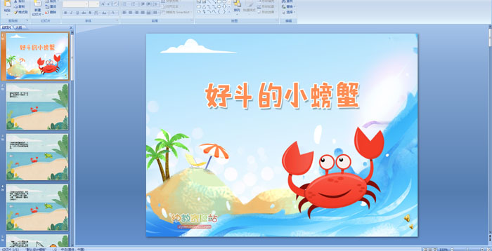 蓝色的海湾里,有一只小螃蟹,它仗着有一双夹子,总爱欺负别人。小鱼被它夹得直喊妈妈,小乌龟被它夹得不敢把头伸出来,小虾一见它就赶紧躲起来。小螃蟹见大家都怕它,非常得意,仰起头来吐泡泡。突然,它发现了一根小铁棒,心想:“谁敢惹我?看我怎么夹住你!” “哈哈!”一个小男孩叫道,“我钓到一只小螃蟹了。”小螃蟹被抓住以后,它后悔地想:以前我总是欺负别人,现在肯定没人肯来救我了。可就在这危机关头,忽然,小鱼、小虾、小乌龟它们出现了,小鱼、小虾抓住小螃蟹使劲地往后拉,小乌龟勇敢地冲上去,咬断了钓钩的绳子,小螃蟹终于得救了。它惭愧地低下了头,不好意思地说:“朋友们,对不起。”小鱼、小虾、小乌龟都高兴地说:“只要你能改过,我们还是好朋友!”