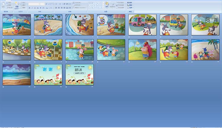 阳光下,四个好朋友手拉着手,高高兴兴地向沙滩走去,它们心里都在想,今天过得可真不一般哦!